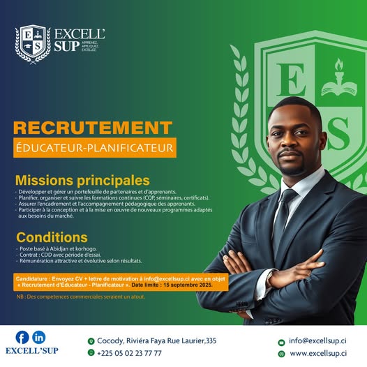 EXCELL’SUP, Établissement Privé d’Enseignement Supérieur, crée par Décision N° 347/MESRS/DGES/DESUP/Kkj/24 juin 2024, recherche des enseignants et des professionnels passionnés de l’innovation pédagogique à candidater pour administrer des modules de formation dans les filières (CQP, BTS, LICENCE & MASTER)