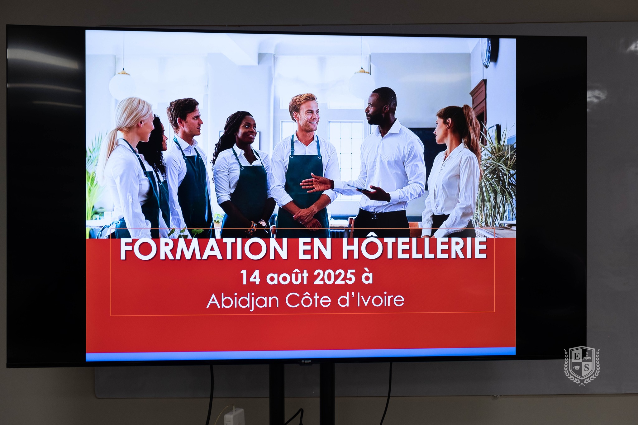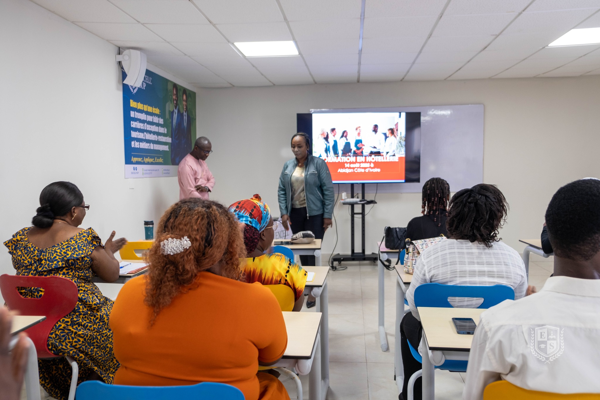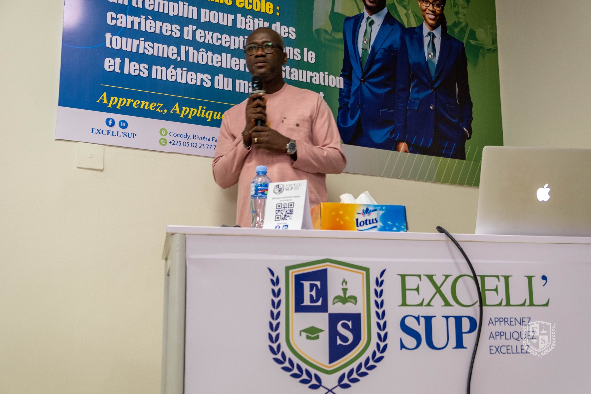 Le jeudi 14 août 2025, EXCELL’SUP a accueilli un séminaire de formation complémentaire animé par le Dr Pascald DJADOU, Directeur de l’établissement. Cette rencontre, organisée en partenariat avec le cabinet KAM-NET GROUPE, a rassemblé des professionnels déjà formés dans les métiers de la réception, de l’hébergement et du service en salle.